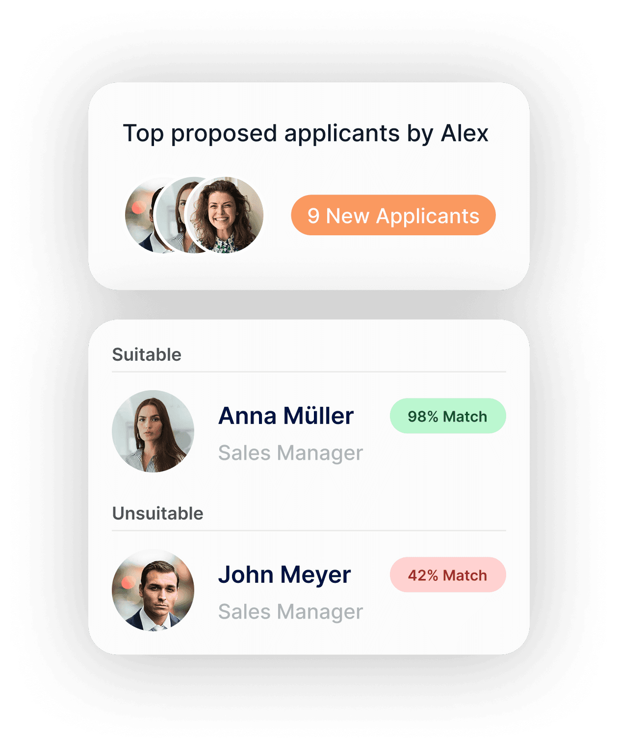 Alex handles the flood of applications, sorting them in buckets and surfacing the few you should talk to.