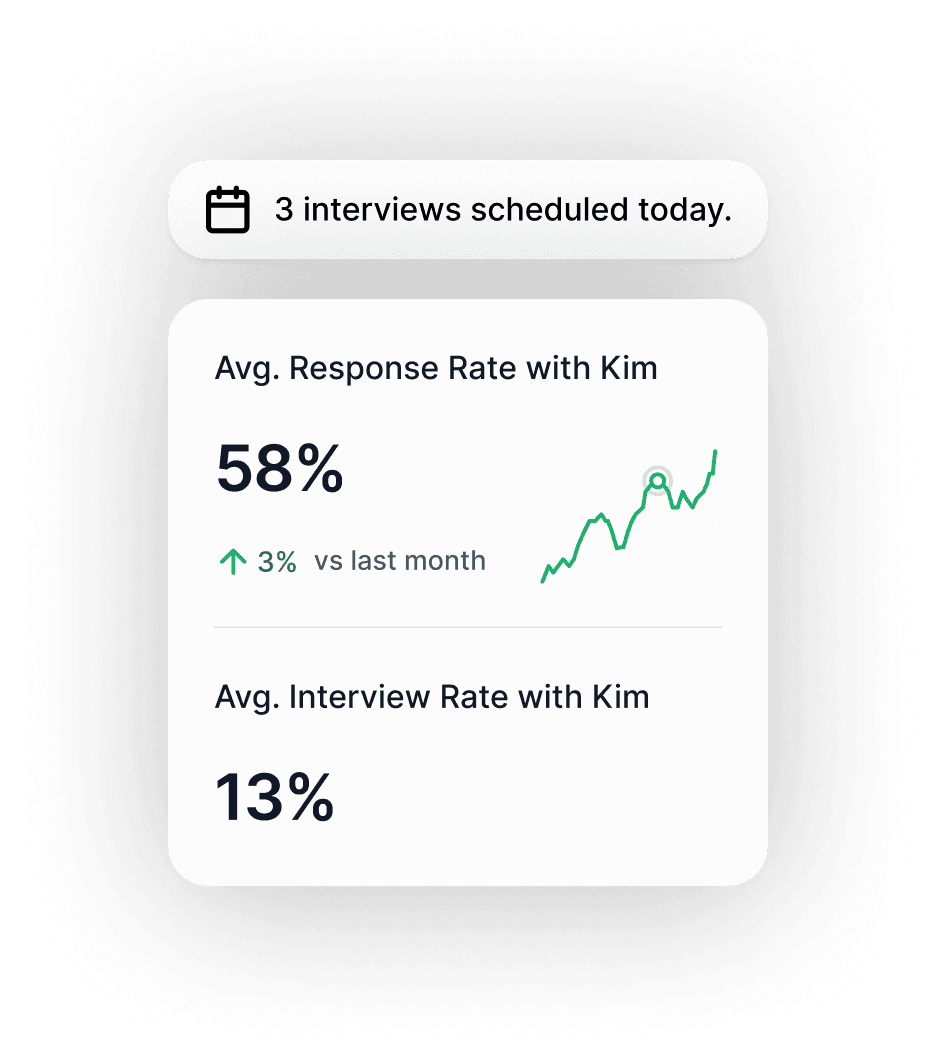 Kim keeps conversations alive: tracking replies, nudging candidates, and retargeting at the perfect time. So no one drops off before the interview.